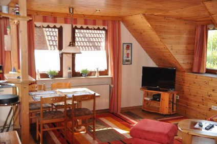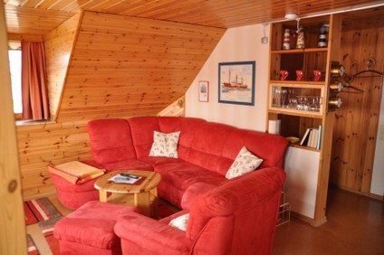 Das Gästezimmer „Heimathafen“ verfügt über einen separaten Schlafraum mit Einzelbetten.